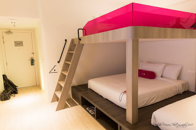 In a nutshell, their rooms are categorised into two types, the Sixer and the Quad room. Each can host up to six or four persons respectively. By removing all the unnecessary furniture cluttering up a room, RWG managed to clear up quite a lot of floor space. They then added Queen-sized beds parked on top of raised platforms, with a built-up bunk bed for the Sixer room hosting another Queen-sized bed. I liked the idea of the bunk bed, especially if you have kids who happen to like climbing everywhere, but mind your head.
