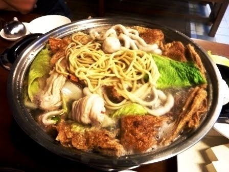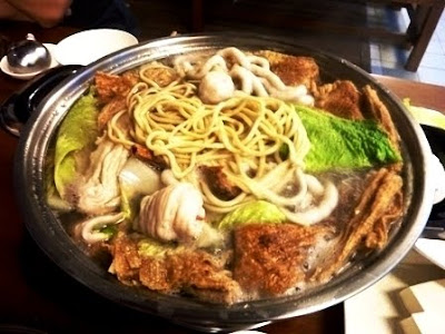On our way home yesterday we saw this newly open restaurant (open since 19th Nov'09), we decided to give it a go tonight. We were seated outdoor, efficiently the lady owner bring us the menu and explained everything, then we just tick on the ordering slip what we want and how many order, prices are all stated on the ordering slip-then the waitress bring the clean steamboat pot, pouring in the soup (only one type of soup and was really good) and started boiling it. We love the ambient of the place, fresh food, great time chatting while eating and each of us drank a few bowl of the steamboat soup.