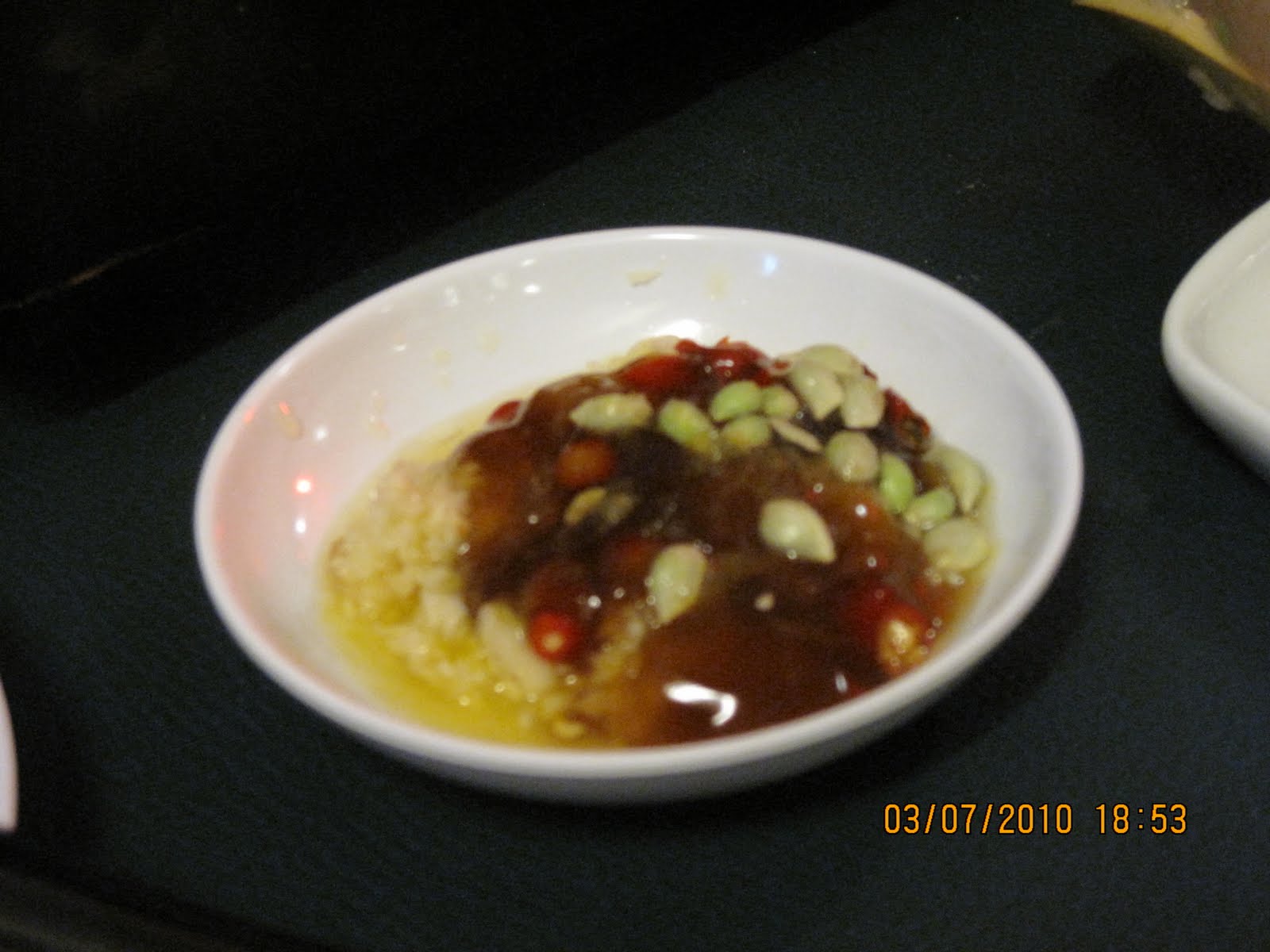 Vegetables and home-made fish cake - I'm a fish cake lover, prob because my mum could make very good fish cake. Good one must be springy enough but not too hard, fish must be fresh too, no funny or pungent smell. This one was just so so. Not springy enough, actually was soft. So I was guessing the fish prob was not too fresh.