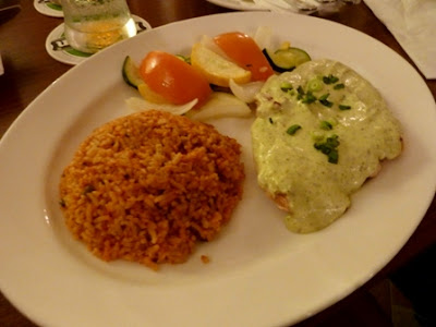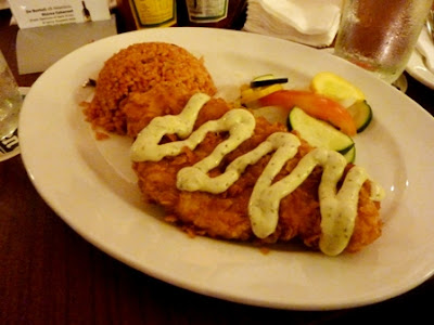 Southern-fried Dory fish dusted with corn meal and served with jalapeno remoulade, seasoned fries and jalapeno coleslaw. Tasted ok.San Antonio Style Grilled Chicken Breast, RM 26.95