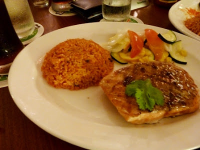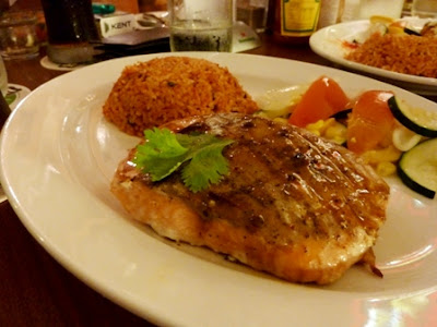 Southern-fried Dory fish dusted with corn meal and served with jalapeno remoulade, seasoned fries and jalapeno coleslaw. Tasted ok.San Antonio Style Grilled Chicken Breast, RM 26.95