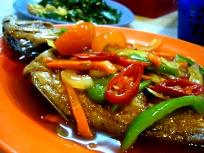 The fish was fried till real crispy and even the fins was crunchy. Topped with sweet and sourish sauce and some condiments, it was appetizingly good. We couldn't have enough of it.