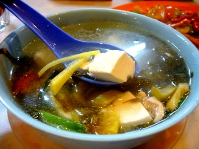 The Ham Choy Tofu Soup can be loosely translated as Preserved Vegetables with Bean Curd Soup. It was cooked with some tomatoes, bean curd, preserved vegetables and chicken meat. Chinese believed that these savoury soup is a good cure for heatiness in the body.