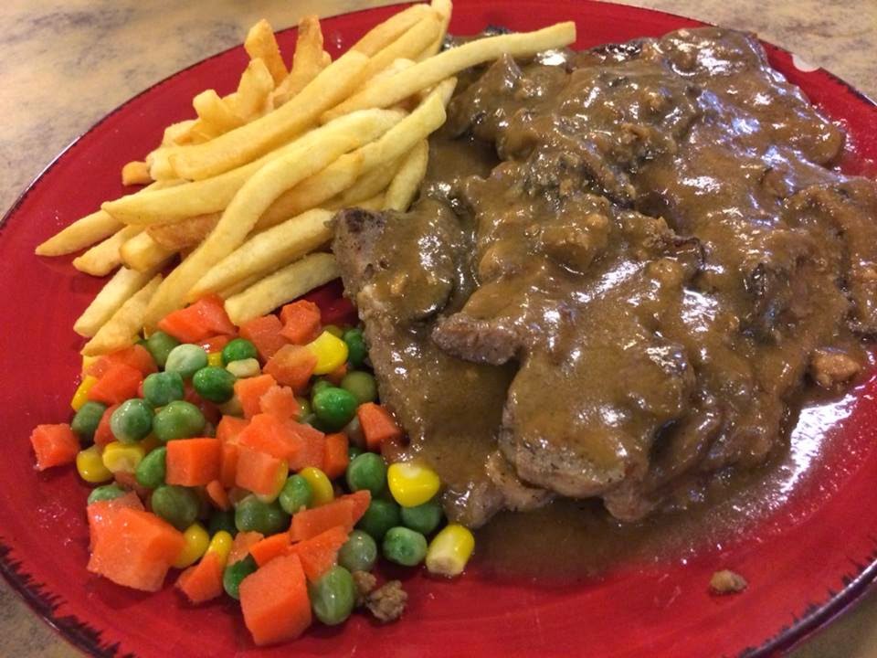 This platter is filled with lots of meaty goodness. Lamb chop, chicken chop, fish and sausage topped with delicious mushroom sauce. All the meats were cooked to perfection, tender and juicy. It was served with a generous portion of french fries and vegetables.