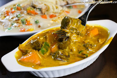 This dish is out of this world and look gorgeous. The sauce is simply bursting out of bounds with flavours, rich aromatic spices, with a kiss of sourness, blanketing the soft moist beef, tendon, carrots and bell peppers. It really goes well with hot soft rice.
