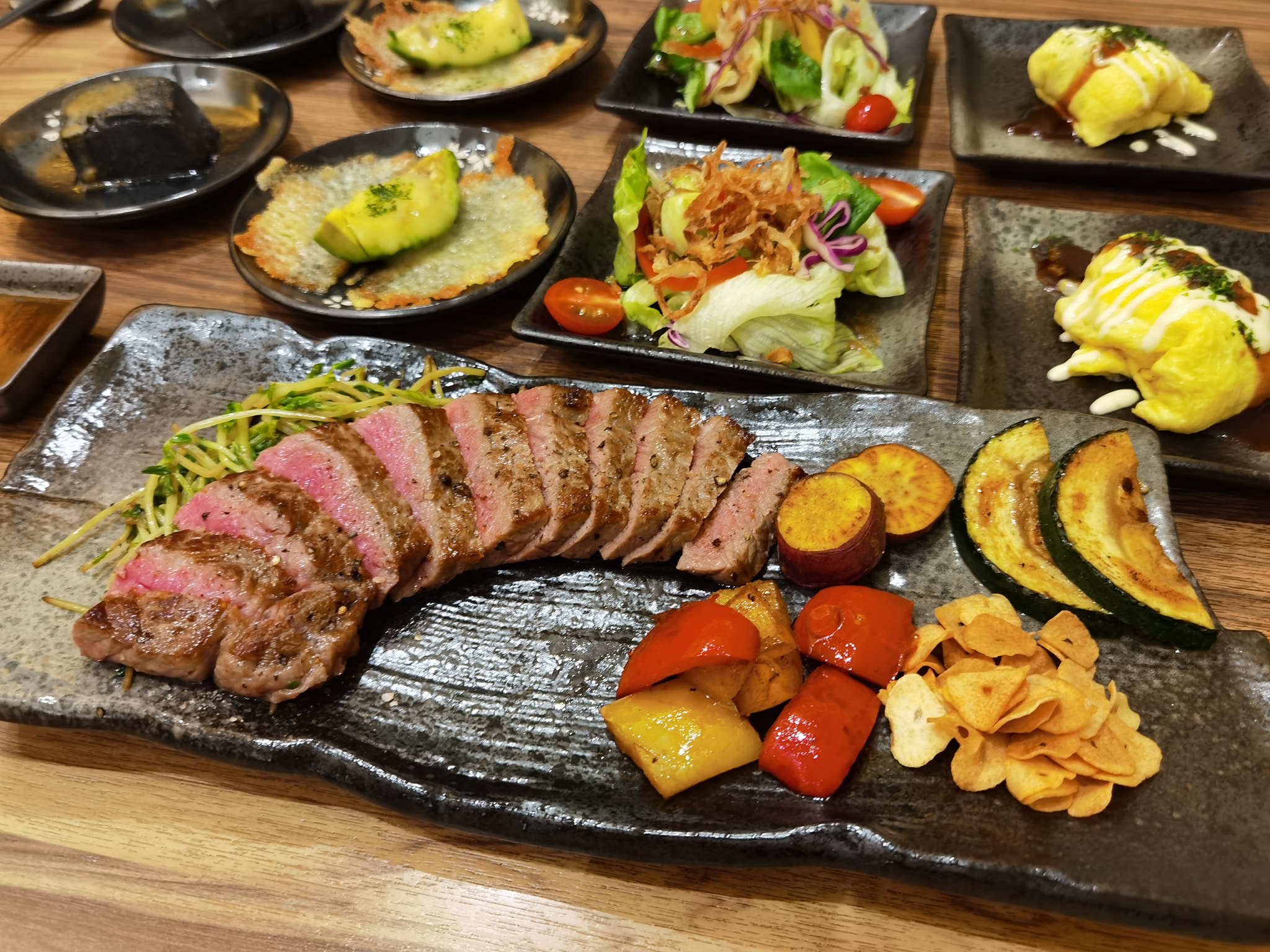 Okonomiyaki (savoury Japanese-style pancake made with Yamato potatoes, shredded cabbage and crispy pork belly), Yakiniku Set (Japanese-style BBQ Australian wagyu beef subtly flavoured with special soy sauce concoction) and Yakisoba (Japanese-style fried noodles).
